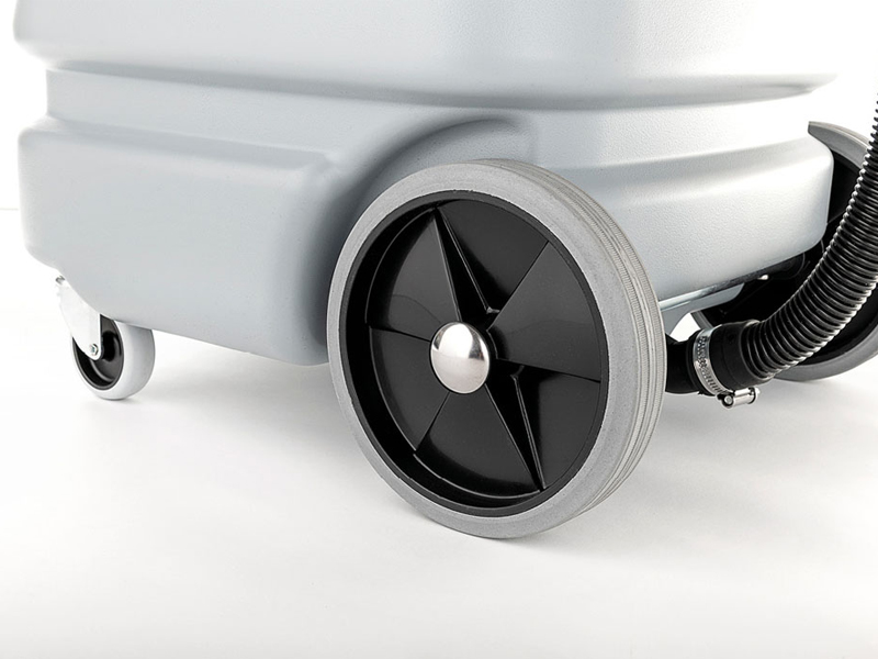 Usisavač za prašinu i tekućine, velikog kapaciteta. Tijelo i postolje od ABS plastike ili INOX-a, prema izboru. Baza od ABS plastike sa četiri zaokretna kotača.